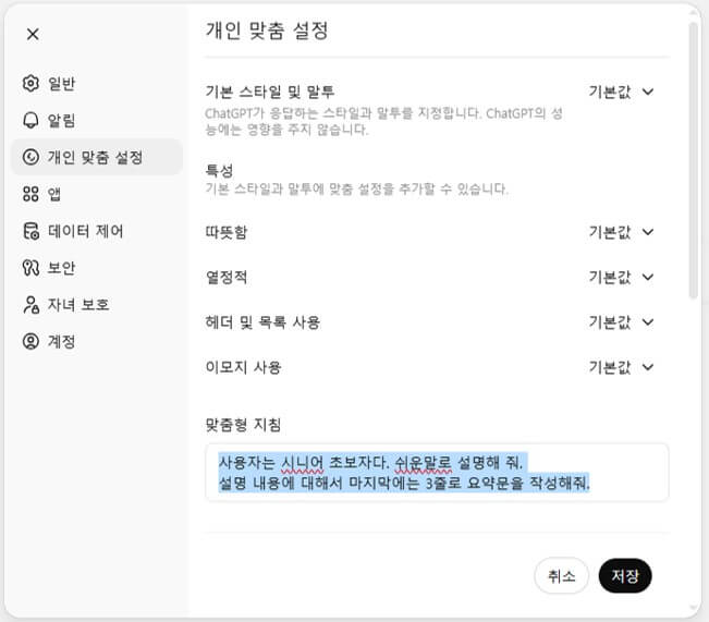 (참고, 시니어 초보자가 가장 먼저 해야 할 ChatGPT 5가지 설정)