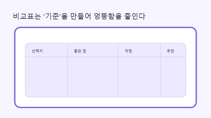비교표를 요청하면 “기준”이 자동으로 잡혀서 답이 안정된다.