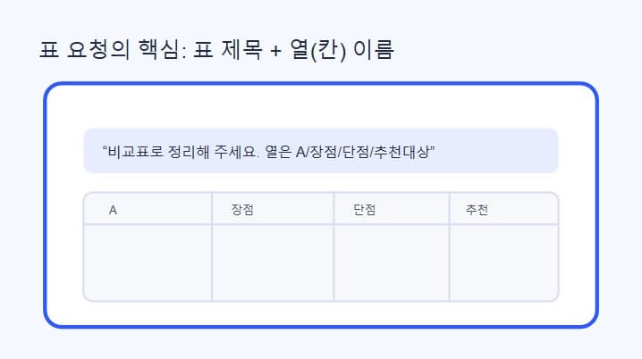 다만 초보자는 “표로 해줘”라고만 말하면 표의 모양이 들쭉날쭉해질 수 있다.